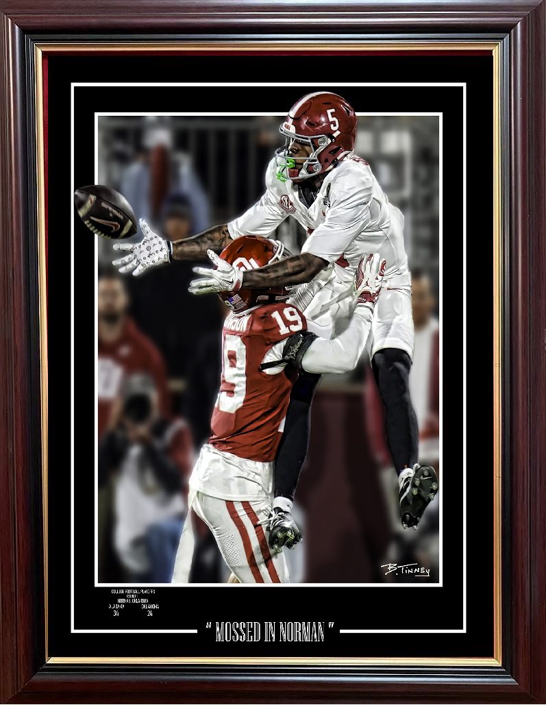 *Any item shown with a painted Alabama “A” coin inset in the matting will be substituted for an appropriate Alabama commemorative coin that benefits the print itself as the painted coin is sold out at the moment. If you have questions about availability, please contact us at 205-940-2202.